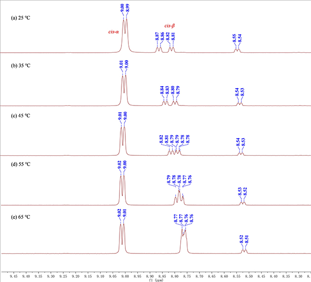 图2 Zn-2(MCP-ZnBr2)配合物的变温核磁图谱