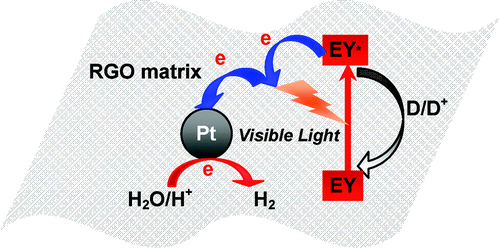 可见光照射下EY-RGO/Pt催化剂催化还原水制氢光催化机理