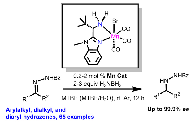 图一. 手性胺基苯并咪唑锰催化剂用于腙C=N双键的不对称转移氢化反应