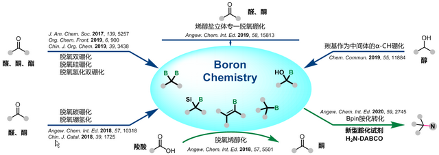图1.刘超团队在有机硼化学导向的含羰分子利用方面的研究工作