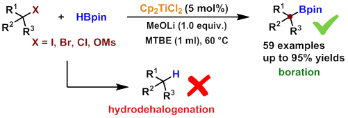 图二:钛催化的烷基卤代物和硼烷直接硼化反应